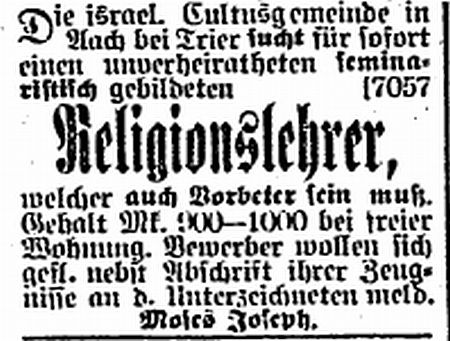 Richard Laufner, Die Geschichte der jüdischen Bevölkerung im Gebiet des heutigen Kreises Trier-Saarburg, in: "Kreisjahrbuch Trier-Saarburg 1979", S. 166 f.