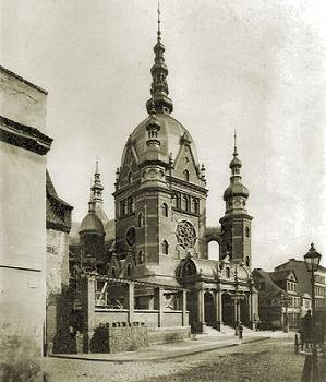 Bis Anfang der 1880er Jahre existierten fünf selbstständige jüdische Gemeinden nebeneinander, die nach langen Querelen schließlich zur „Synagogengemeinde in Danzig“ fusionierten; sichtbarster Ausdruck war die nach zweijähriger Bauzeit am 15.September 1887 erfolgte Einweihung der Großen Synagoge an der damaligen Reitbahnstraße durch den Rabbiner Werner Kossmann. Das imposante Gebäude - im Stile der Neorenaissance errichtet – bot fast 2.000 Gläubigen Platz.