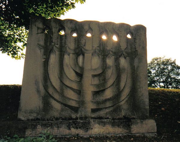 Gedenkstein und Menora am ehemaligen jüdischen Friedhof in Küps (Aufn. Jürgen Hanke)