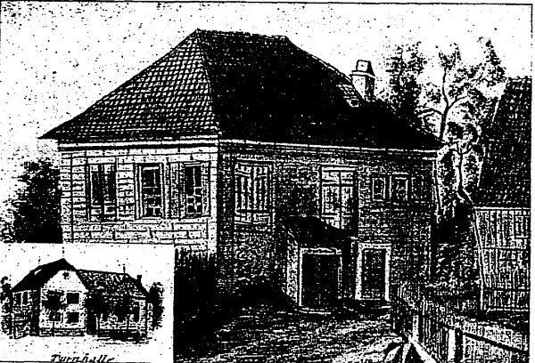 "Hier wo die Synagoge stand, erhebt sich jetzt ein Turnerhaus. Was edler Sinn zuvor geplant, hat Opfermut geführt hinaus. Auch fürder unsere Losung sei: Frisch, fromm, fröhlich, frei." (Aufn. J. Hahn, 2007)