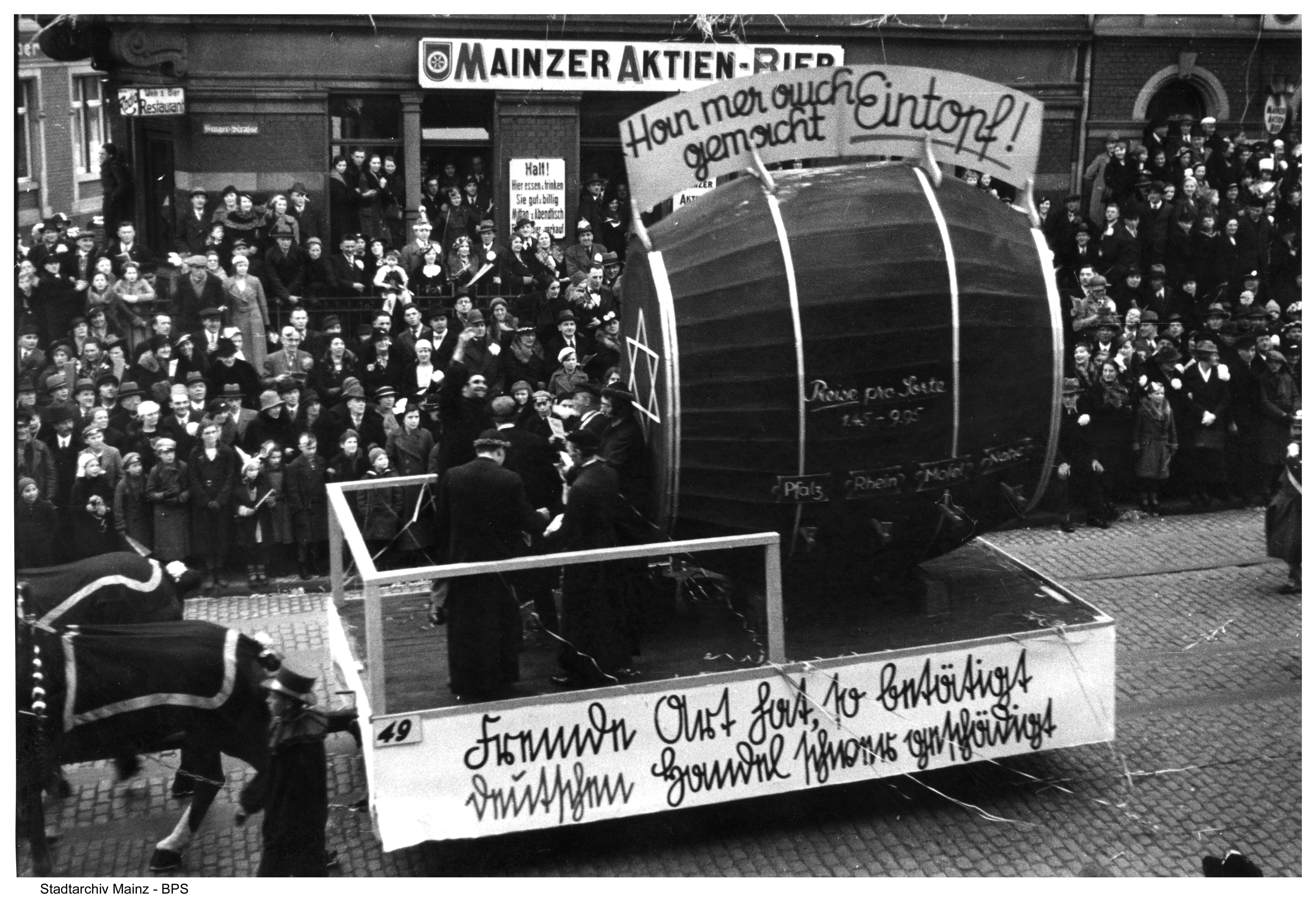 Motivwagen mit antisemitischer Ausrichtung beim Mainzer Karneval 1936 (Stadtarchiv Mainz)
