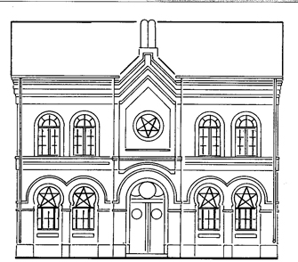 Synagoge Meschede (links: hist. Aufn Bernd Schulte - rechts: Skizze der Synagogenfassade, Stadtarchiv)