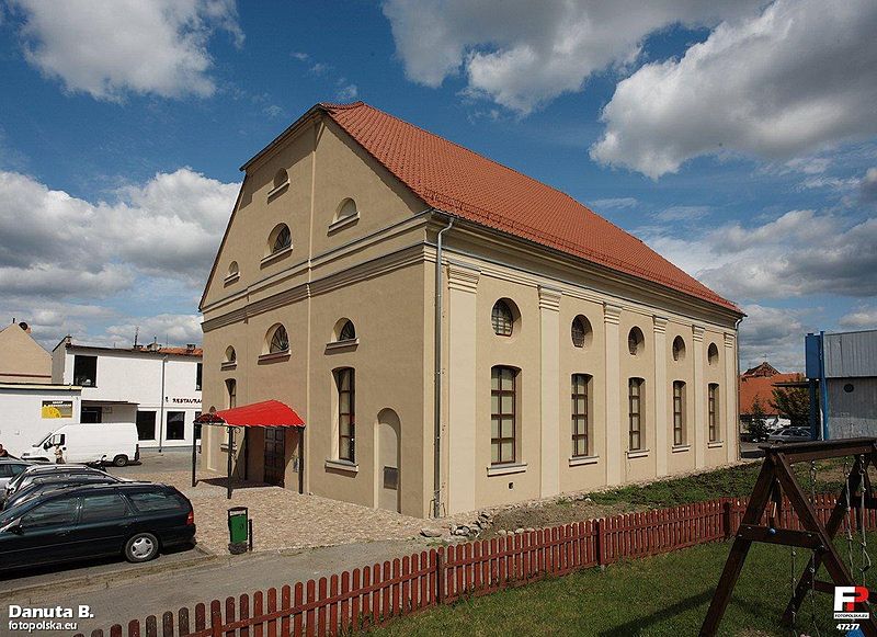 Synagogengebäude vor und nach der Sanierung (Aufn. TravelPhoto, um 1995 bzw. Aufn. Danuta B., 2009, aus: commons.wikimedia.org, CC BY-SA 3.0)