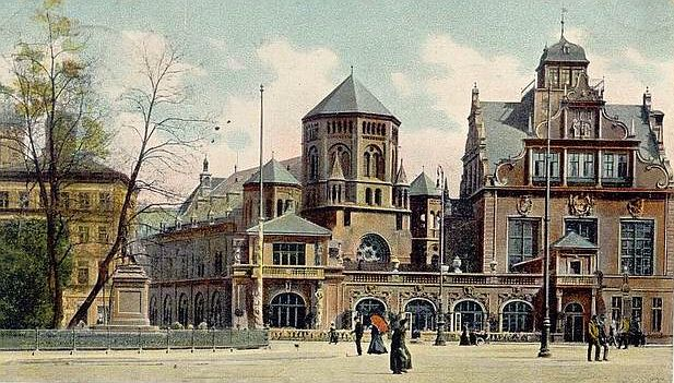 Synagoge an der Herzog-Max-Straße, rechts Künstlerhaus (Ansichtskarte um 1910) Synagogengebäude - virtuelle Rekonstruktion