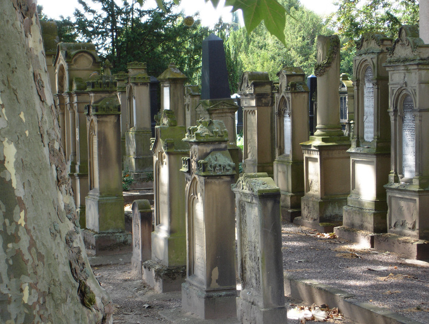 Anfang der 1860er Jahre legte die Neustädter Kultusgemeinde am östlichen Stadtrand ihren Friedhof an; die Ende der 1880er Jahre erbaute Trauerhalle ist erhalten. Das Begräbnisgelände - es umfasst eine Fläche von nahezu 5.000 m² mit ca. 540 Grabsteinen - wird bis auf den heutigen Tag von der "Jüdischen Kultusgemeinde der Rheinpfalz" genutzt.