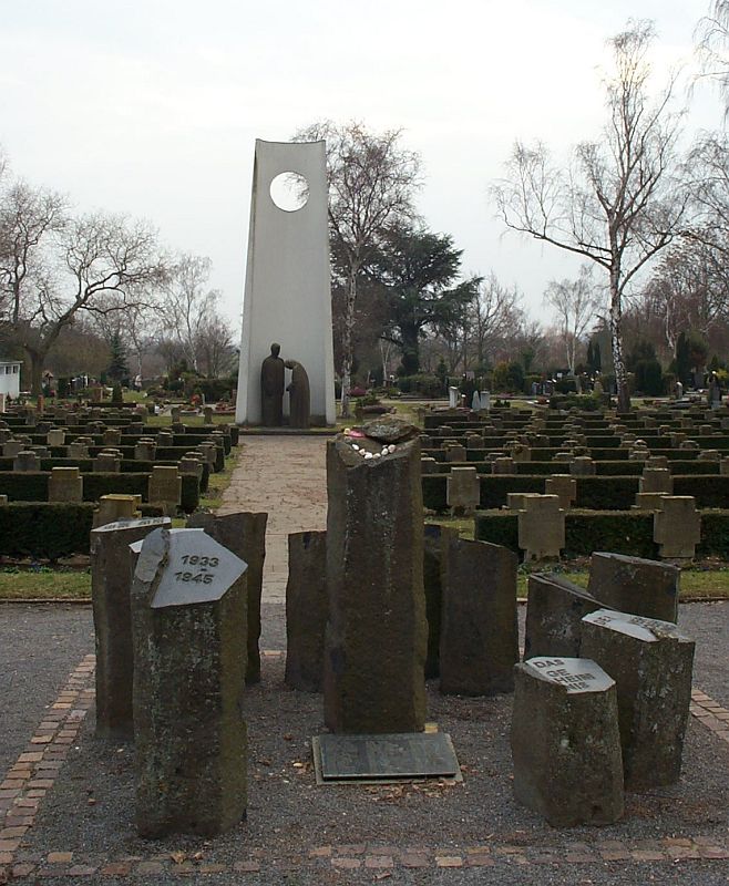 Bereits Mitte der 1950er Jahre hatte die Jüdische Kultusgemeinde der Rheinpfalz an gleicher Stelle einen Gedenkstein aufstellen lassen, der an 35 Neustädter Deportationsopfer erinnert; dieser Stein steht heute auf dem Friedhof - umgeben von niedrigen Stelen, die die Inschrift tragen: "Das Geheimnis der Versöhnung ist die Erinnerung. Wir trauern um die von den Nationalsozialisten ermordeten jüdischen Bürger unserer Stadt 1933-1945".