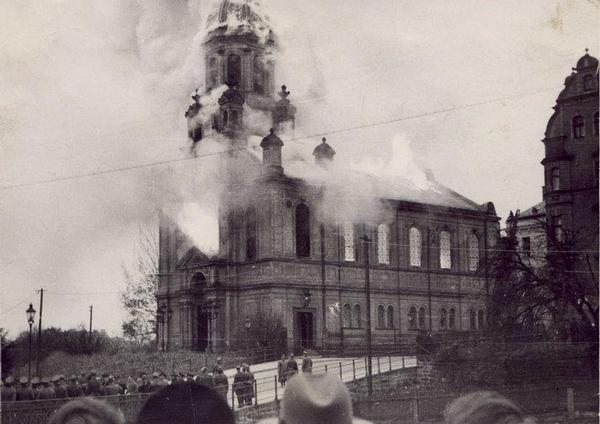 Brennende Synagoge in Reichenberg (hist. Aufn.)