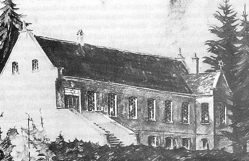 Synagoge (links: hist. Aufn., rechts: Zeichnung Alois Baumhauer, 1931)