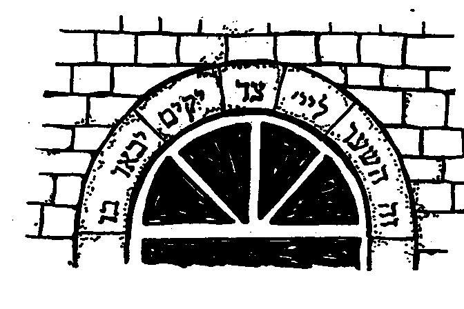 Synagogengebäude in Sien (hist. Aufn., aus: sien.de) Portalinschrift* (Skizze Ruth Eckhoff)