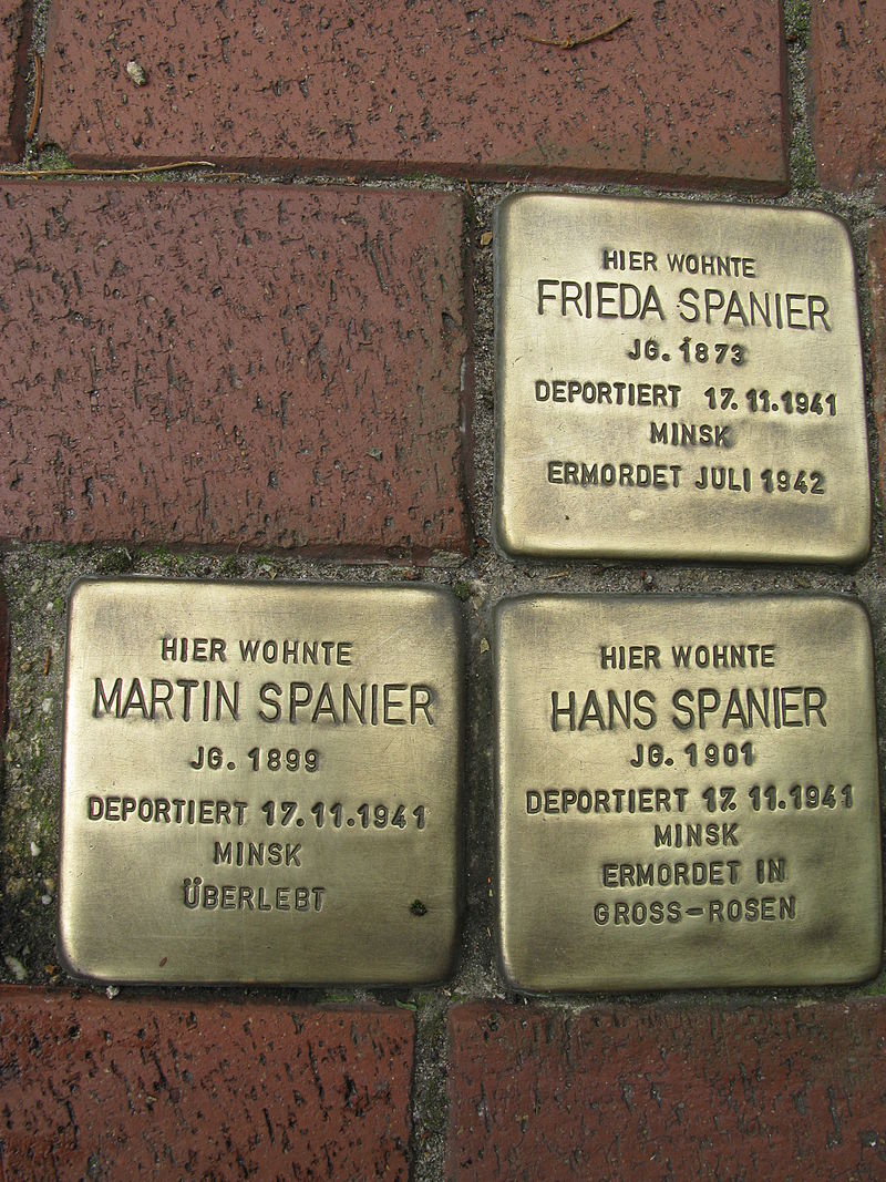 „Stolpersteine“ in Verden/Aller, verlegt am Johanniswall 7 und Predigerstraße 11 (Aufn. Werner Schröter, 2009, aus: wikipedia.org, CC BY-SA 3.0)