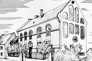 Ihre erste Synagoge - 1861 durch den Rabbiner Landsberg aus Darmstadt eingeweiht - befand sich im Obergeschoss der Schule am alten Rathausplätzchen; doch schon wenige Jahrzehnte später erwiesen sich diese Räumlichkeiten als zu klein, sodass die Gemeinde nach einem Grundstück für einen Synagogenneubau Ausschau hielt; ein solches wurde in der Wiesenstraße gefunden und bebaut. Im September 1903 wurde nach dreijähriger Bauzeit das neue Synagogengebäude, ein zweigeschossiger Massivbau, feierlich eingeweiht. Über dem Haupteingang waren die zehn Gebote und das Bibelzitat „Wisse, vor wem du stehst” in hebräischen Schriftzeichen eingemeißelt.